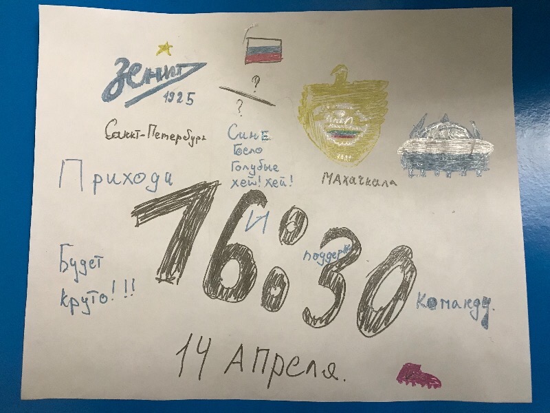 Для того, чтобы принять участие в конкурсе, необходимо нарисовать афишу к матчу против «Анжи», указав участников, дату, время и место проведения игры: